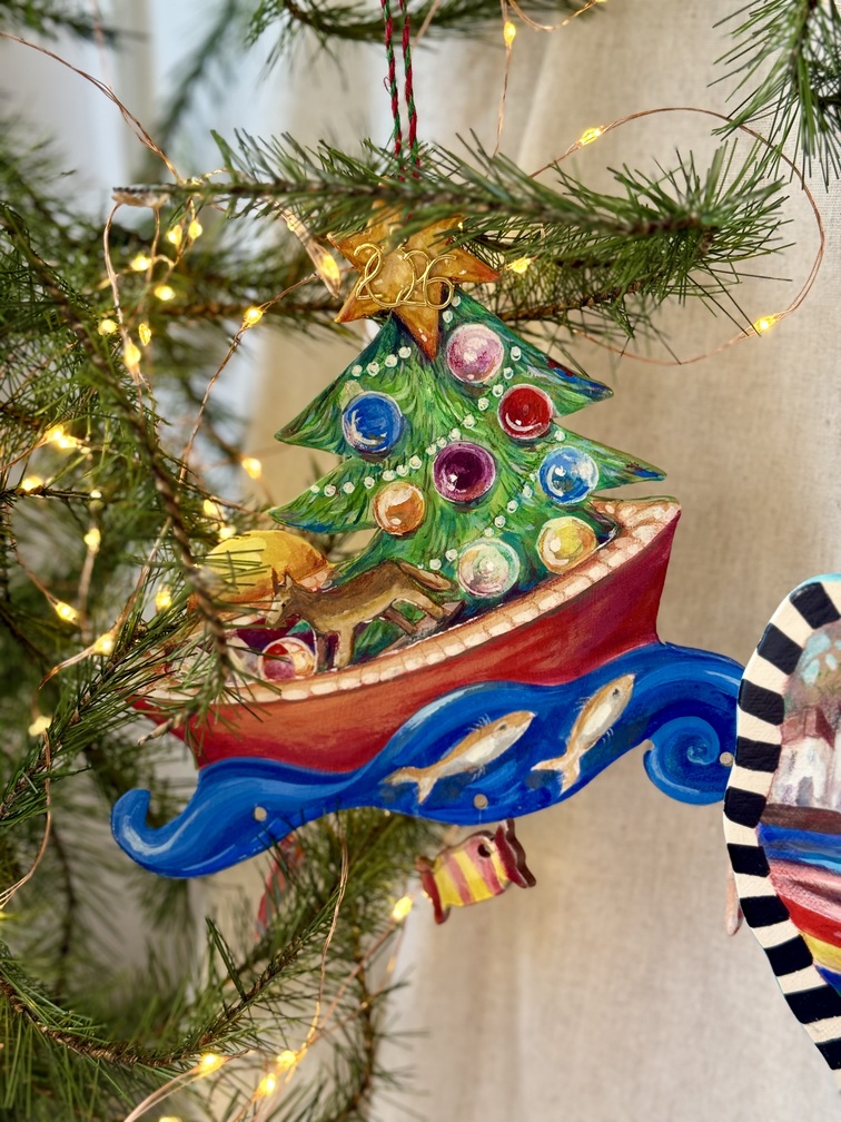 Handpainted ceramic lucky charm with acrylics by visual artist Vicky Vlachogianni with her signature style and technique.