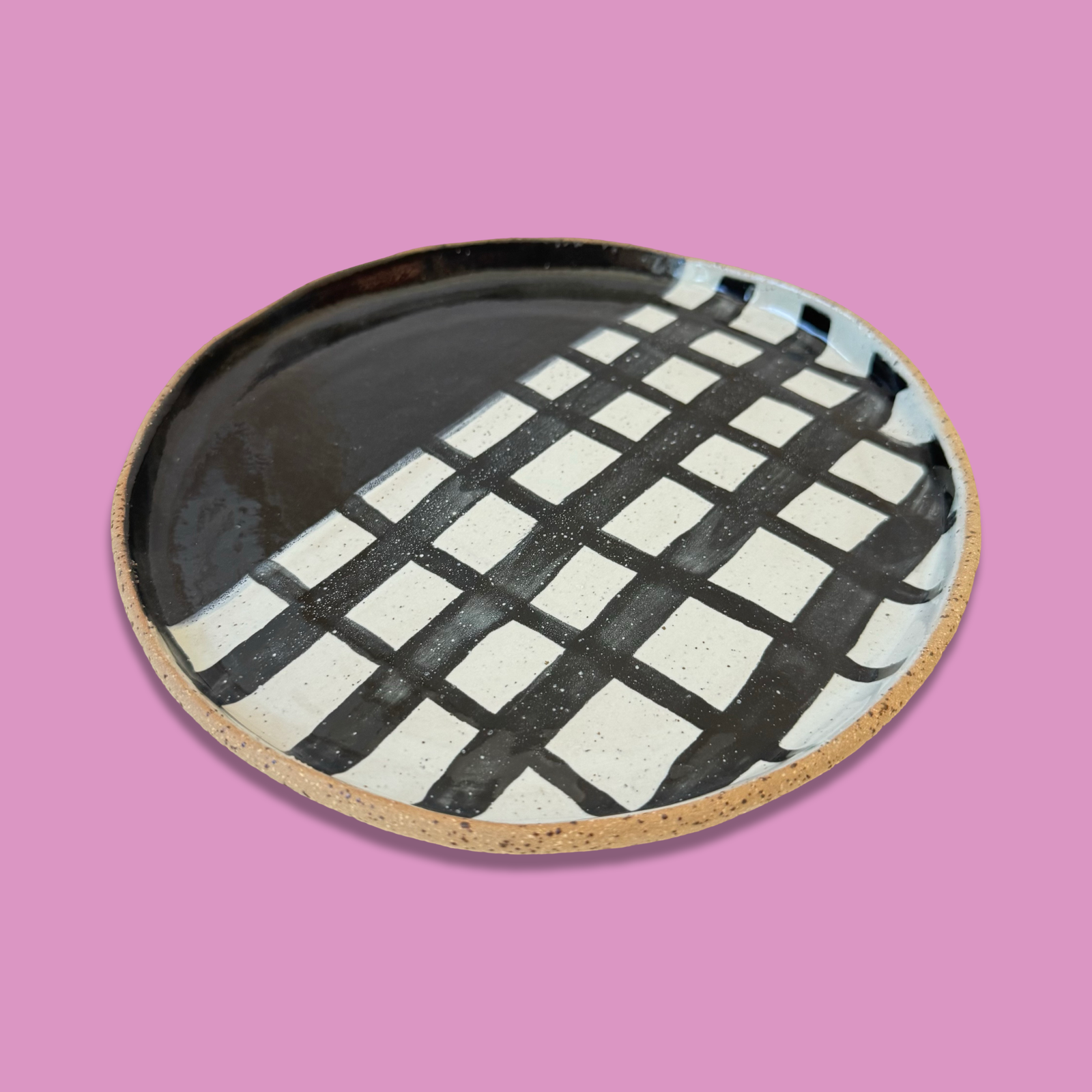 One of a kind plate with uneven shape.