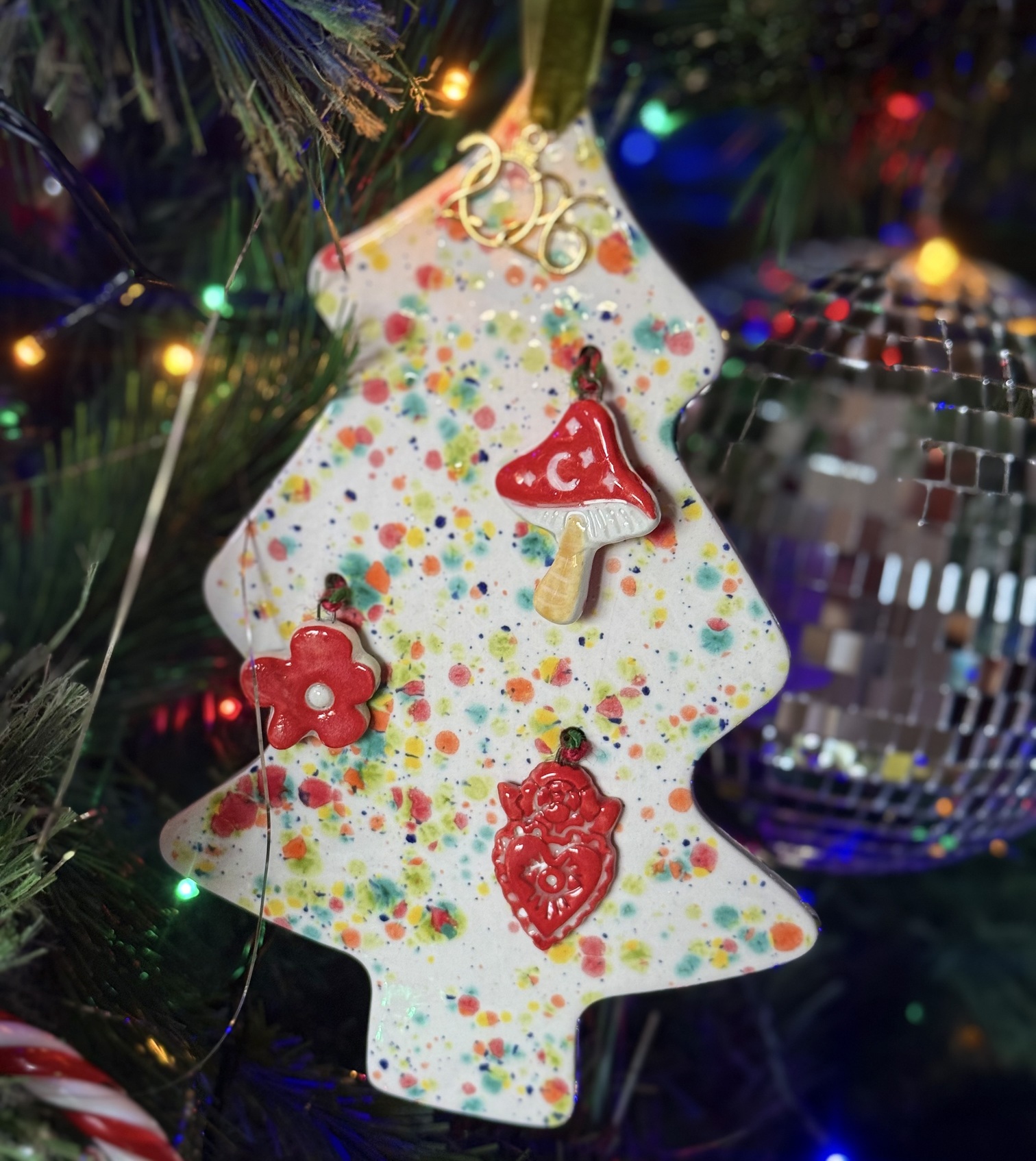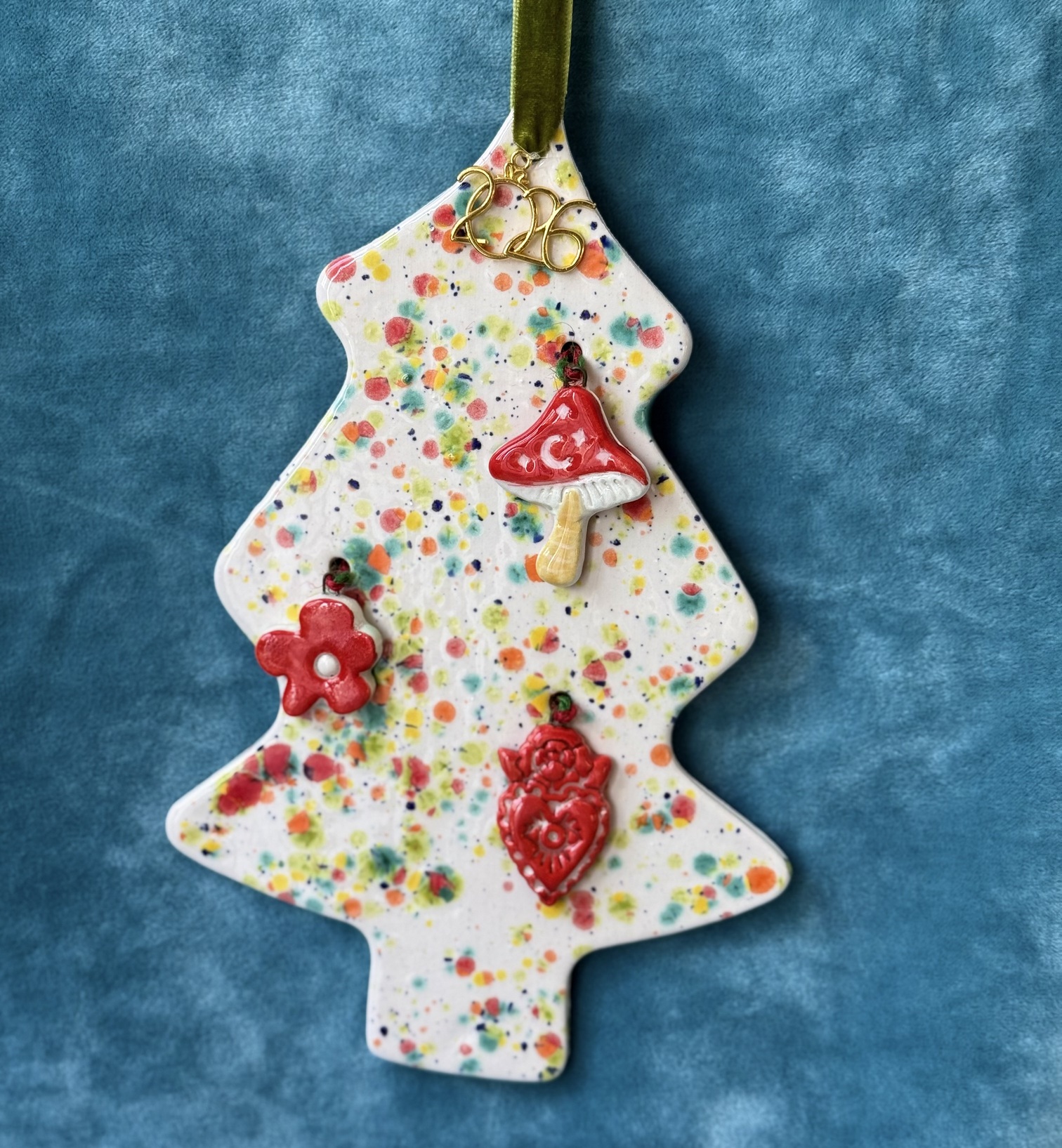 Ceramic handpainted christmas ornament lucky charm 2026 with velvet ribbon