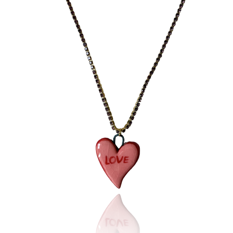 Hand-painted ceramic charm with stainless steel chain with crystals 45cm with 5cm extension