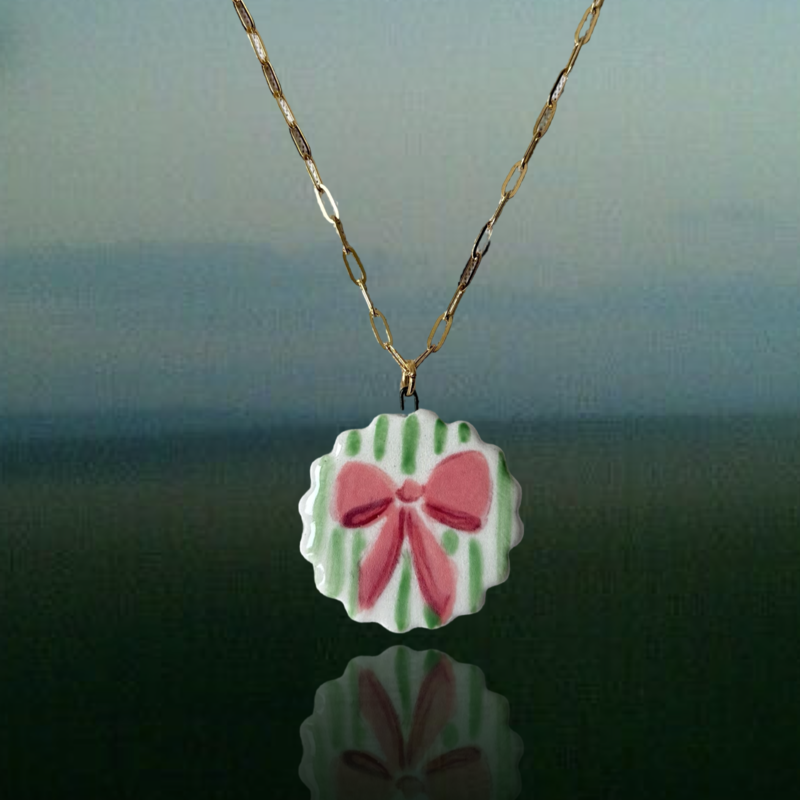 Hand-painted ceramic charm with stainless steel chain 45cm with 5cm extension