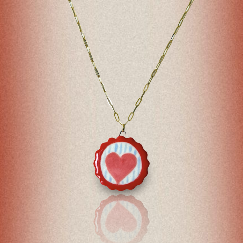 Hand-painted ceramic charm with stainless steel chain 45cm with 5cm extension