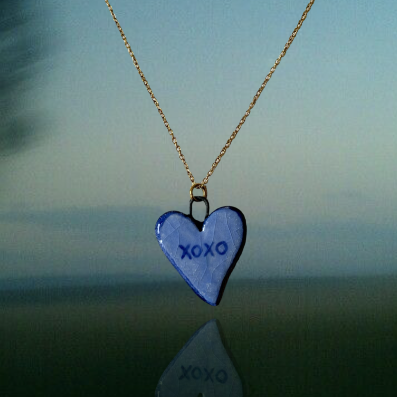 Hand-painted ceramic charm with stainless steel chain 45cm with 5cm extension